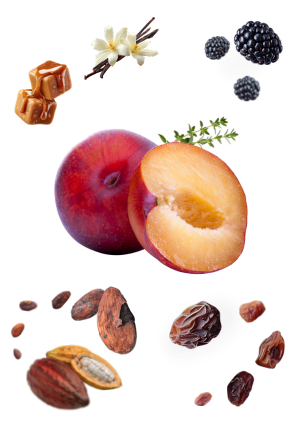 Aparecen notas de cacao, regaliz y vainilla, procedentes tanto de su crianza en roble francés como de la complejidad de la mezcla en campo.